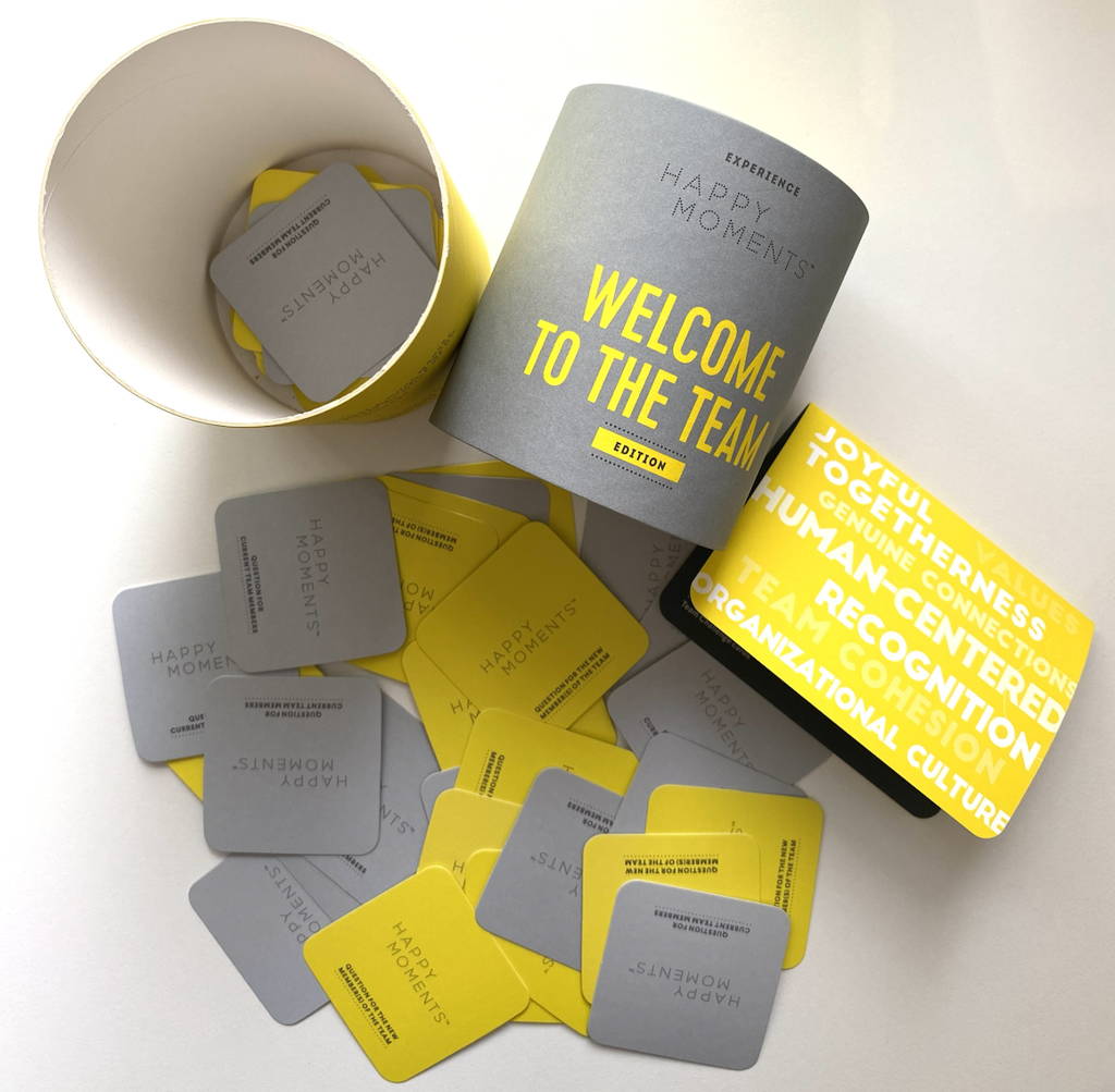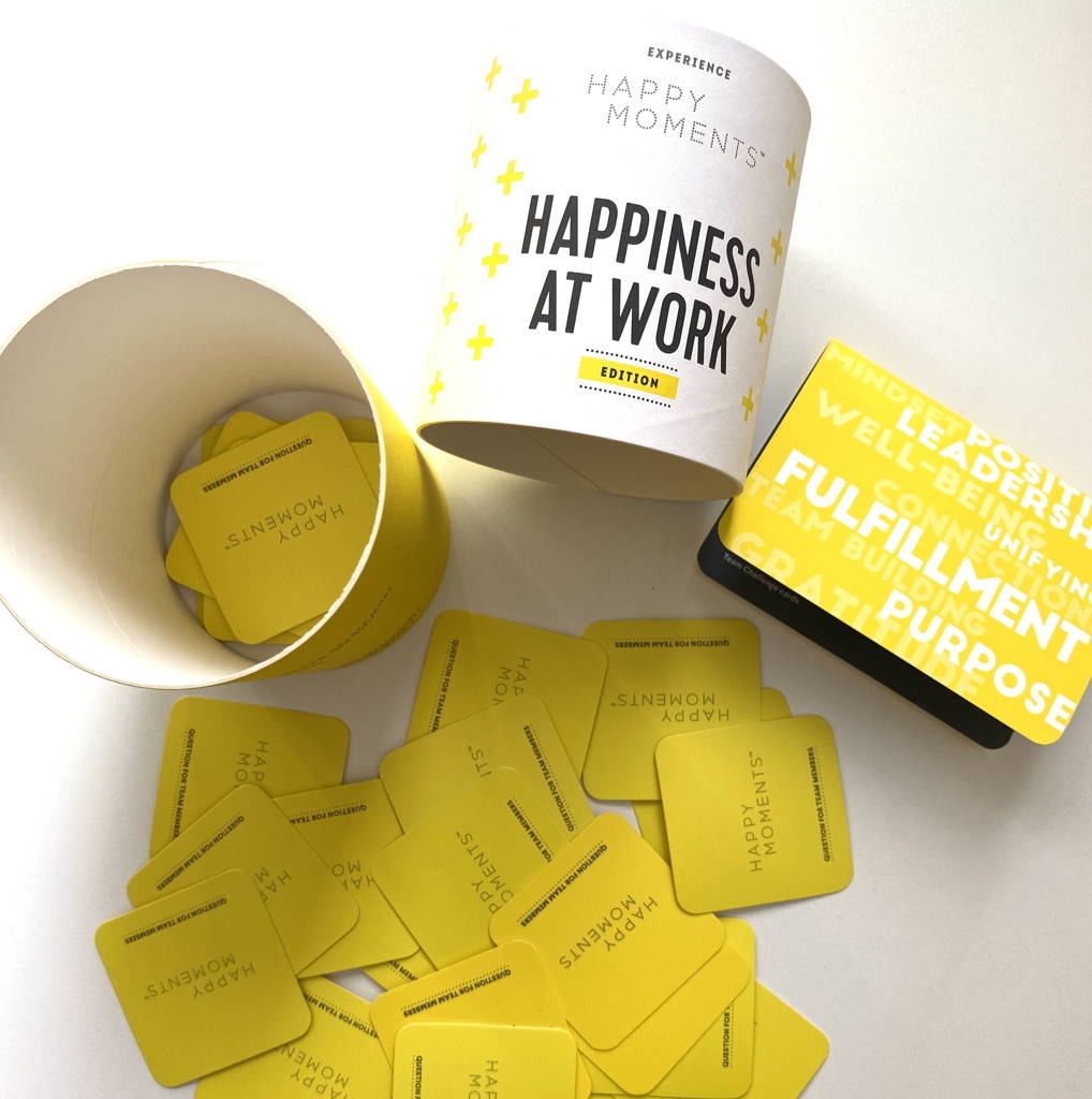 The Experience Happy Moments™ Question Cards are thoughtfully crafted to spark fresh ways of thinking, feeling, and connecting together. Combining depth with a joyful touch of humor, they inspire renewed perspectives, spark motivation, strengthen team bonds, awaken realizations, and empower meaningful growth.